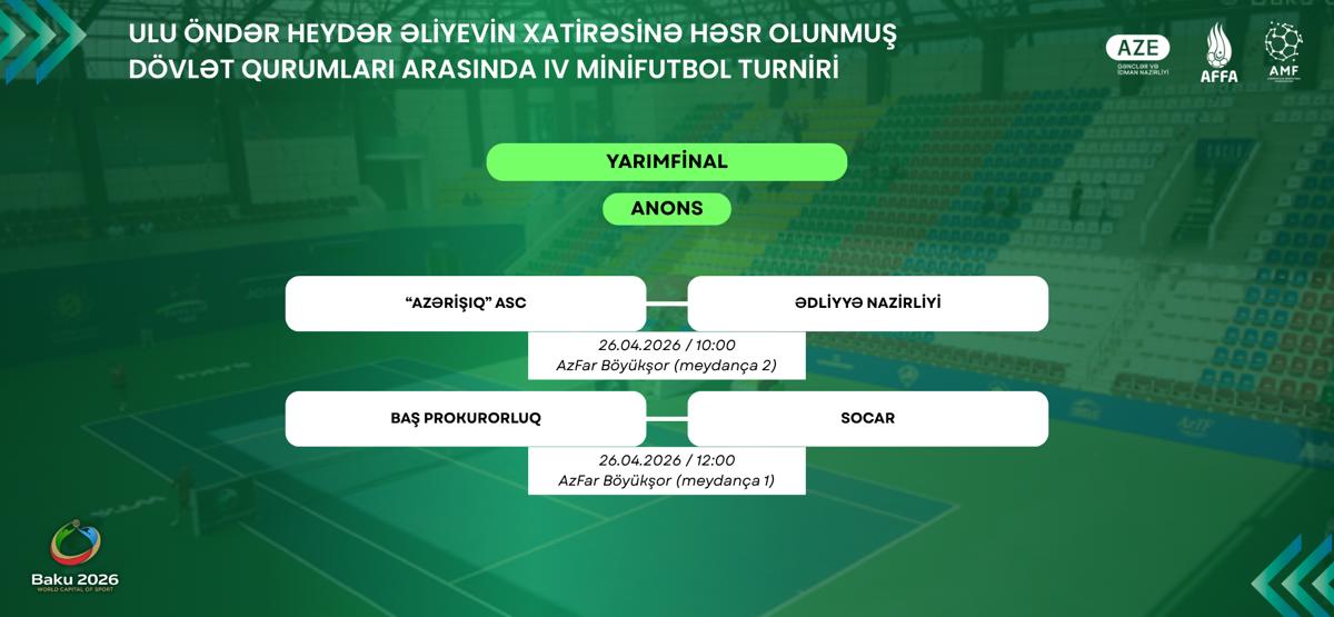 Ümummilli Lider Heydər Əliyevin xatirəsinə həsr olunmuş IV minifutbol turnirində yarımfinal